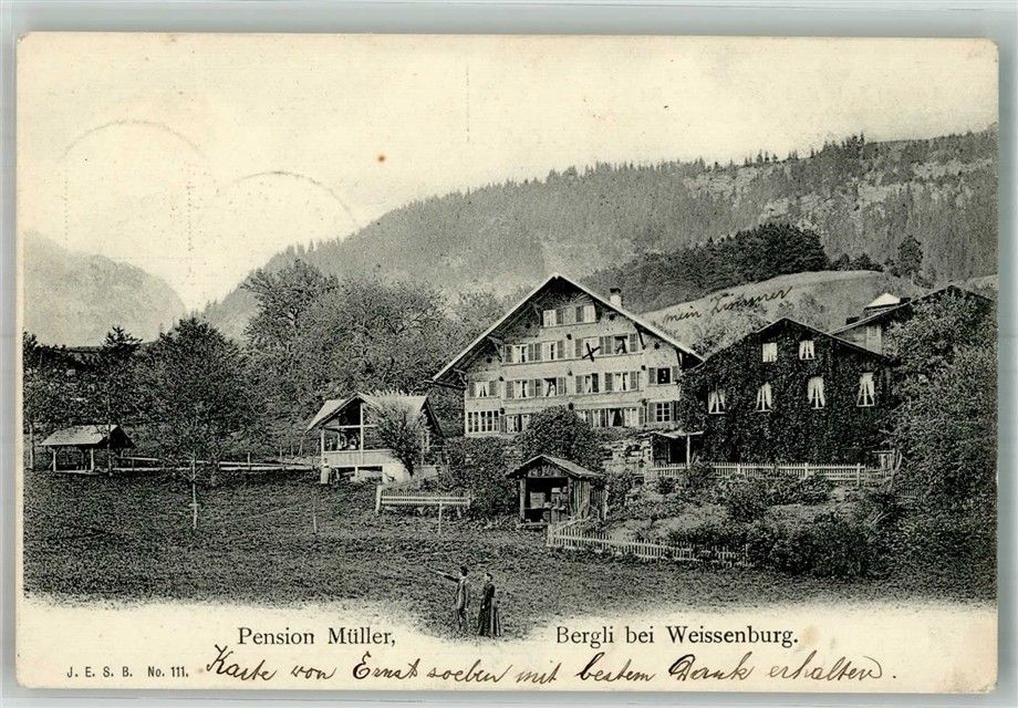 3764 Weissenburg 1905 Foto AK Bergli Pension Müller