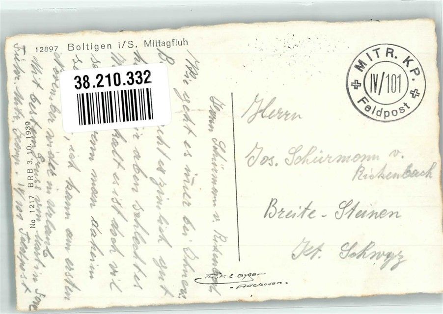Boltigen, Feldpost Mitr. KP. IV/101 Mittagfluh