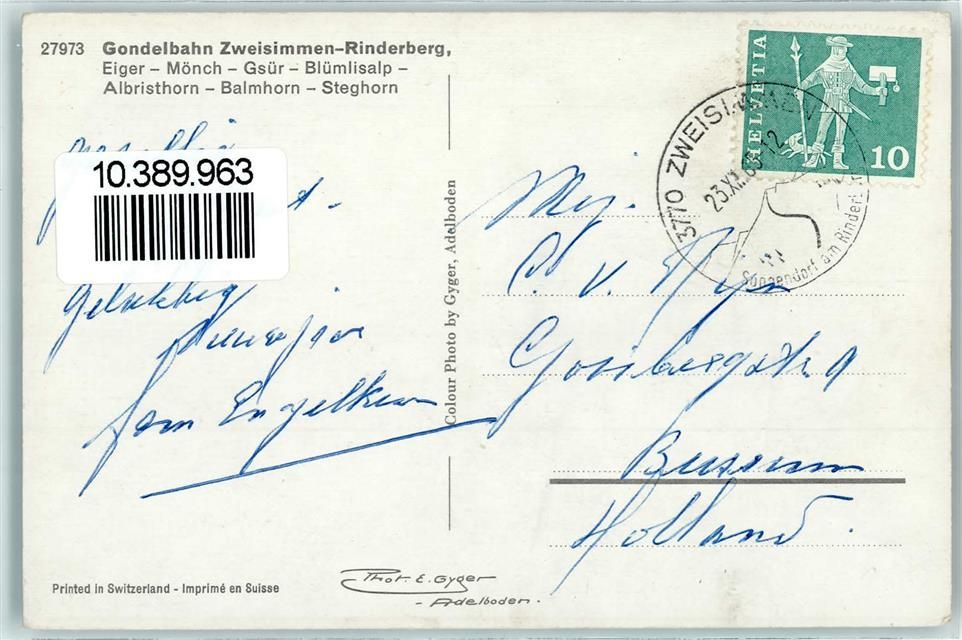 3770 Zweisimmen 1963 - Gondelbahn Zweisimmen Rinderberg Eiger Mönch Gsür Blümlisalp Albristhorn Balmhorn Steghorn