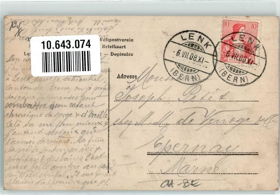 3775 Lenk im Simmental 1908 - Ort lt. Stempel