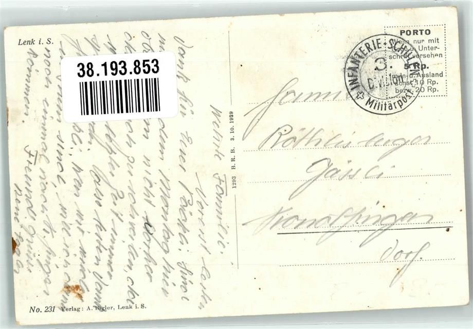 Lenk im Simmental, Feldpost Infanterie-Schule 3.Div.
