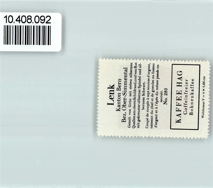 3775 Lenk im Simmental - Vignette Wappen Kaffee Hag ca 1920-1940 Spindel Schwert