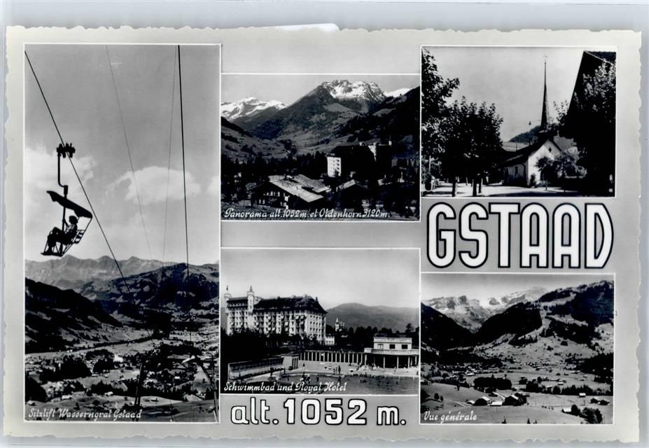 3780 Gstaad 1990 Werbe AK Seilbahn Schwimmbad Kirche