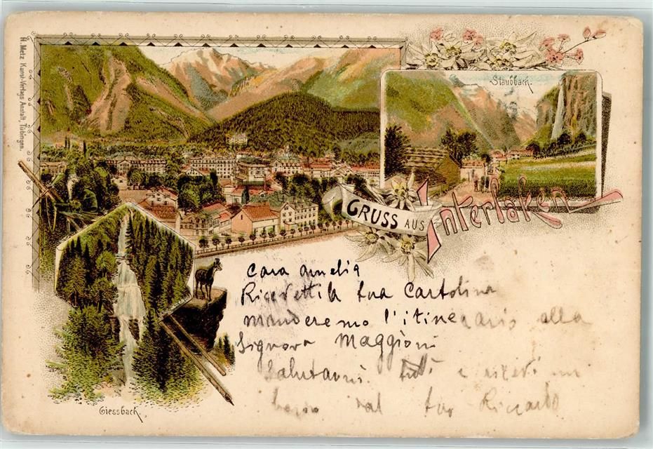 3800 Interlaken 1898 Lithographie Giessbach Staubbach