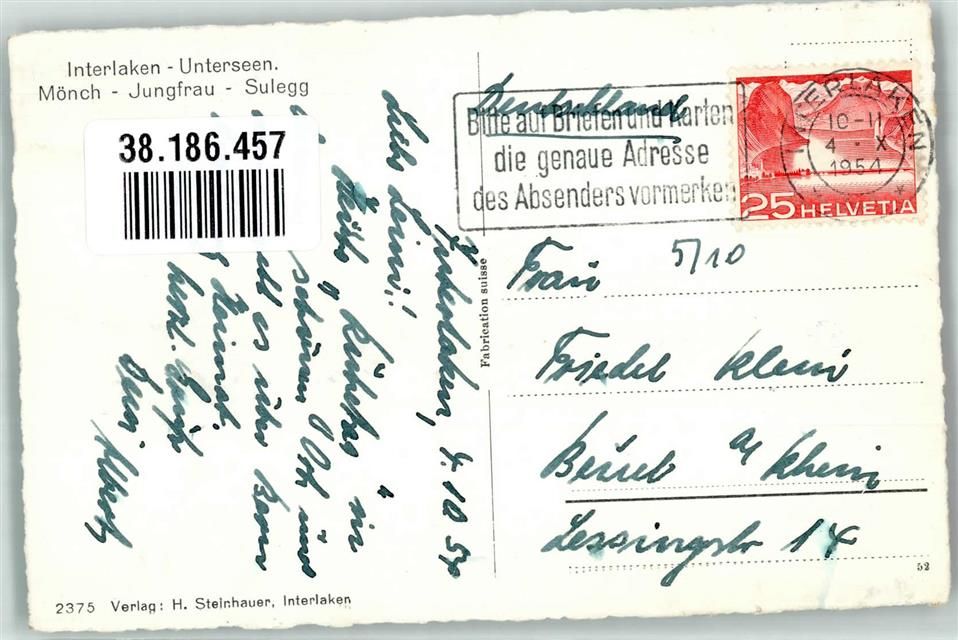 3800 Interlaken 1954 Foto AK Mönch Jungfrau Sulegg