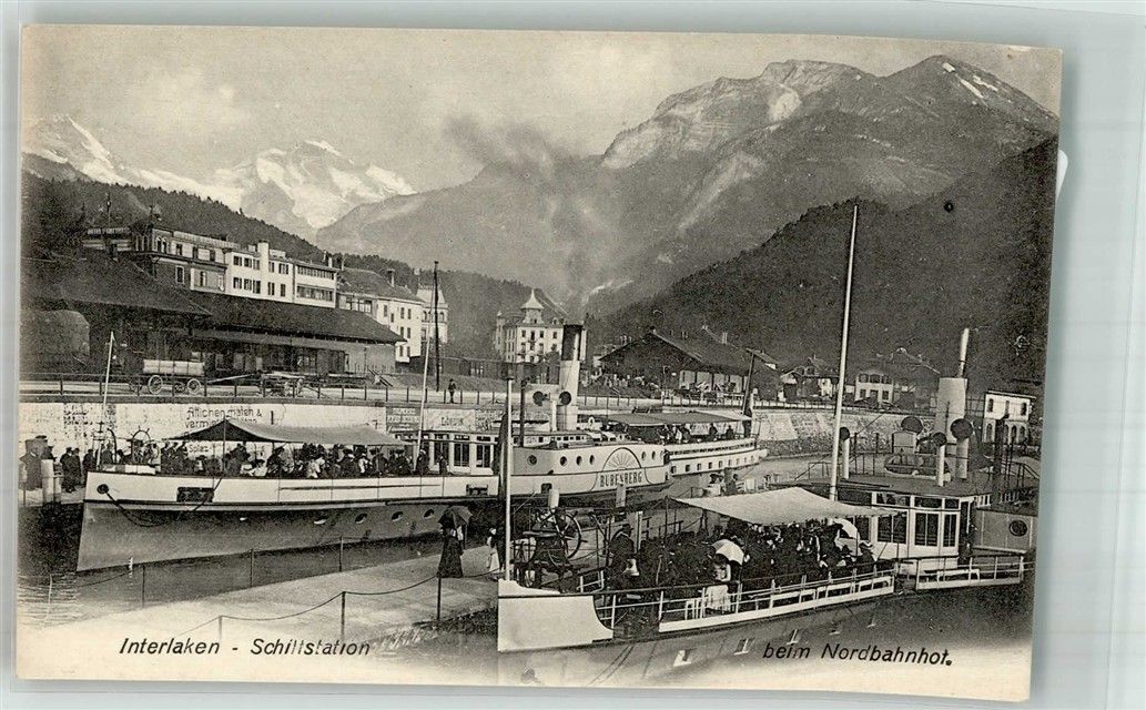 3800 Interlaken Foto AK Nord- Bahnhof Dampfschiff Bubenberg Hafen