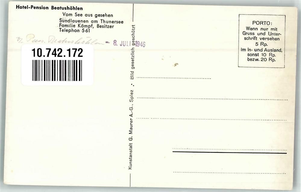 3800 Sundlauenen Foto AK Hotel Pension Beatushöhlen