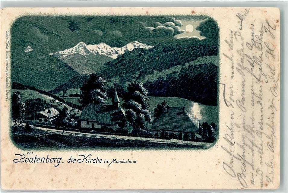 3803 Beatenberg 1900 Lithographie / Mondschein Kirche