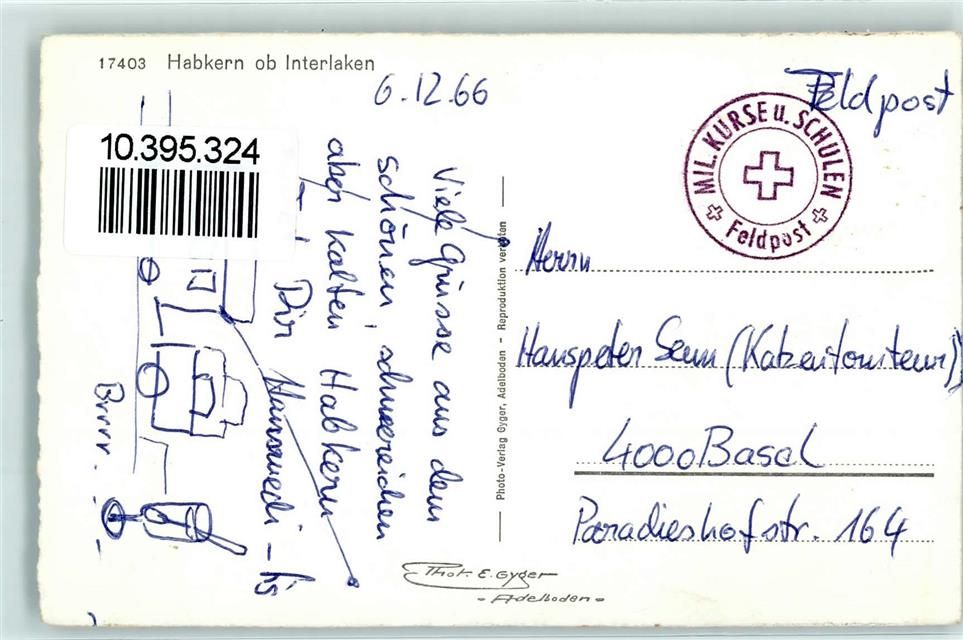 3804 Habkern 1966 - ob Interlaken Feldpost Winter