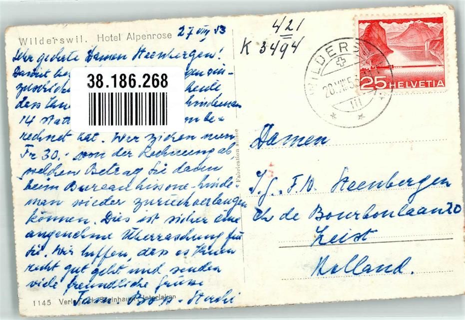 3812 Wilderswil 1953 Foto AK Hotel Alpenrose