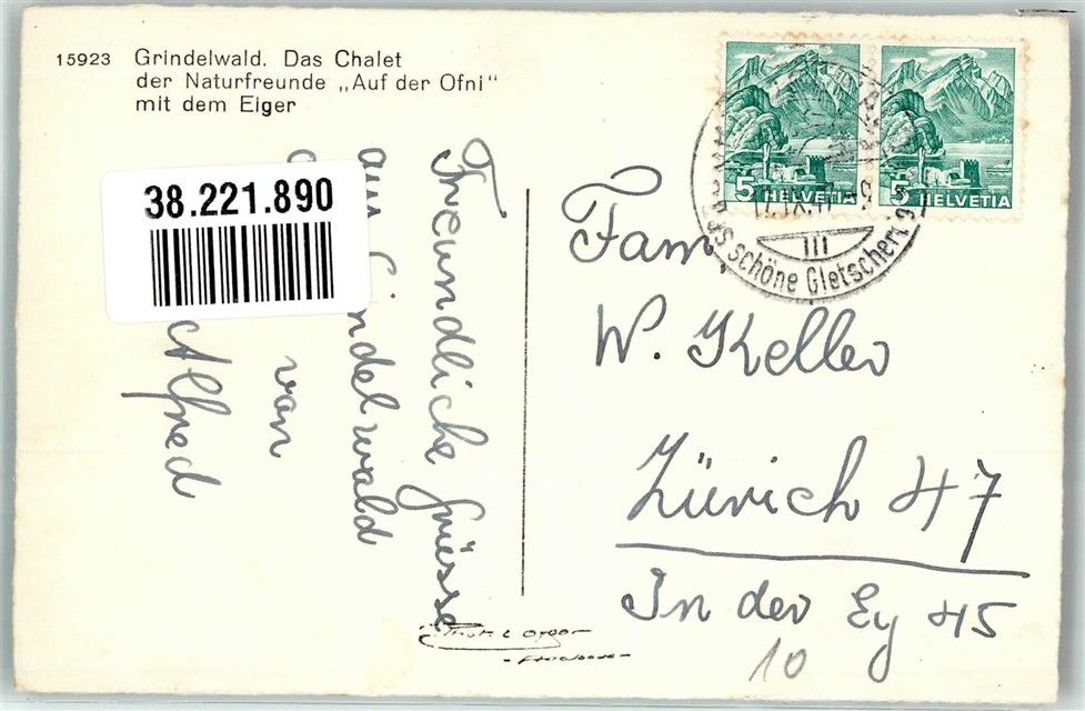 3818 Grindelwald 1947 Foto AK Pension Chalet der Naturfreunde Auf der Ofni