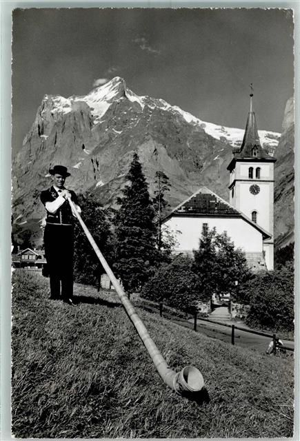 3818 Grindelwald 1958 - Alphornbläser mit Wetterhorn