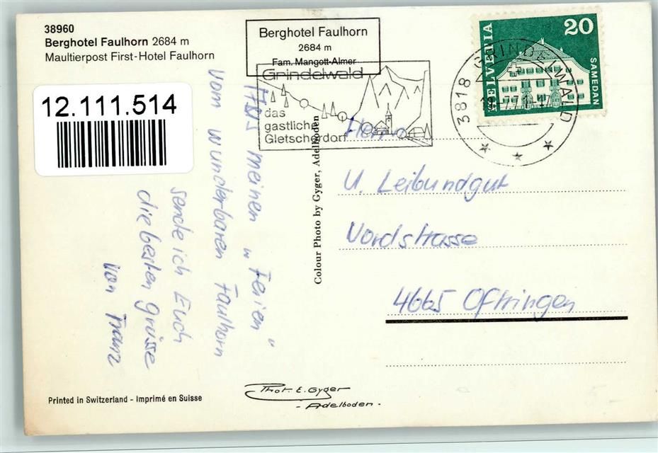 3818 Grindelwald - Berghotel Faulhorn Maultierpost First-Hotel Faulhorn
