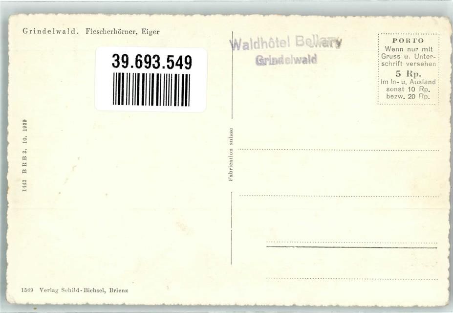 Grindelwald, Fiescherhörner Waldhotel Bellwary Hüttenstempel