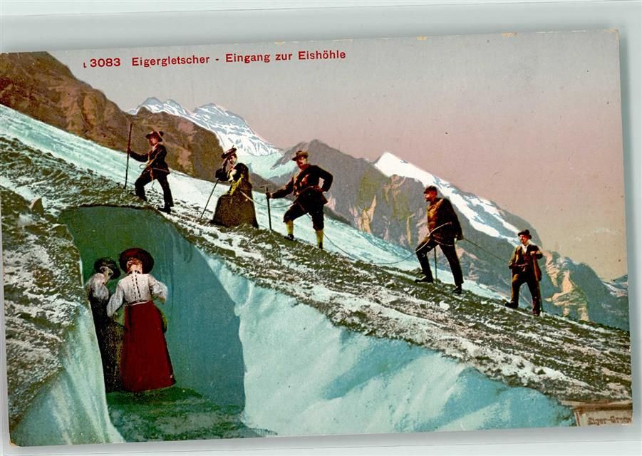 3823 Eigergletscher - Bergsteigerseilschaft am Eingang zur Eishöhle