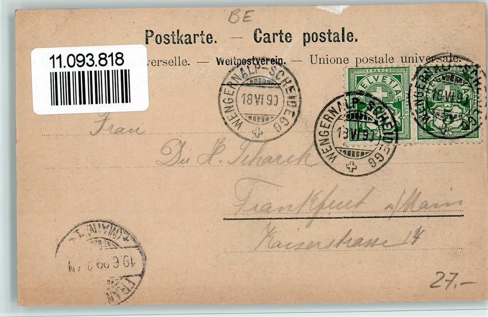 3823 Kleine Scheidegg 1899 Künstlerkarte Wengernalpbahn sign.