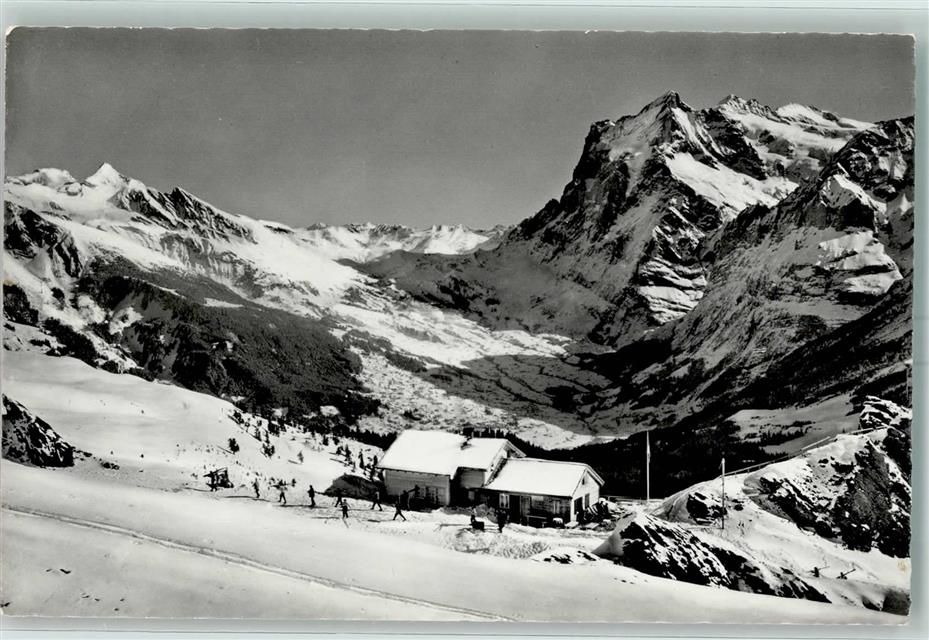 3823 Kleine Scheidegg 1964 - Restaurant Rotstöckli Blick auf Grindelwald und Wetterhorn Skifahrer