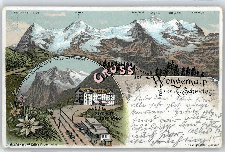 Kleine Scheidegg, Verlag Schlumpf, Wengernalp, Wetterhorn, Gebirgs-Panorama