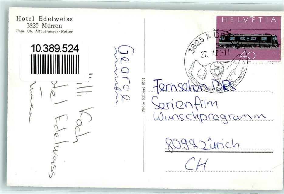 3825 Mürren 1982 Gebrauchsspuren Hotel Edelweiss