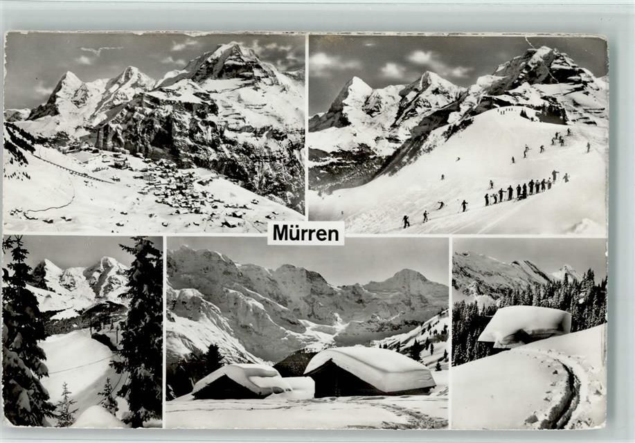 3825 Mürren - Skifahrer Berghütten Winter