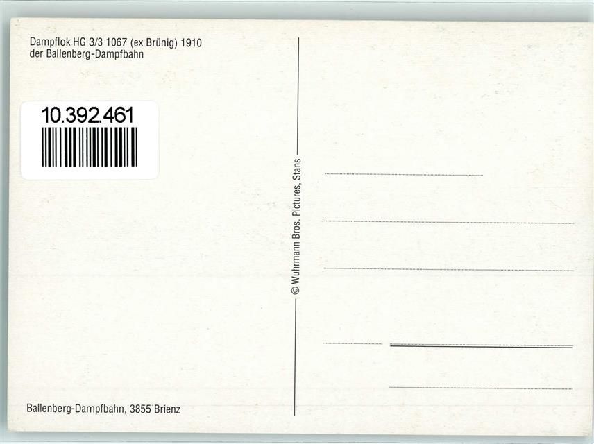 3855 Brienz BE 1910 - Dampflok HG 3/3 1067 ex Brünig der Ballenberg Dampfbahn