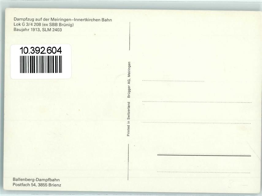 Brienz BE, Ballenberg Dampfbahn Dampfzug auf der Meiringen Innertkirchen Bahn Lok G 3/4 208 ex SBB Brünig SLM 2403 Ballenberg Damfbahn