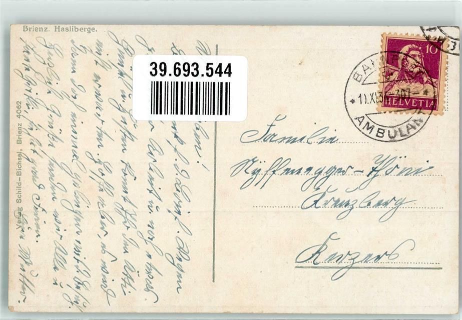 3855 Brienz BE - Hasliberge Bahnpost Zug 307