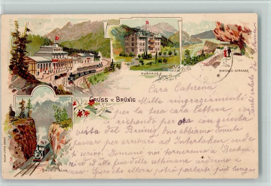 3860 Brünig 1897 Lithographie Gruss aus -- Brünig Bahn , Eisenbahn , Verlag Müller & Trüb ,gute Erhaltung AK