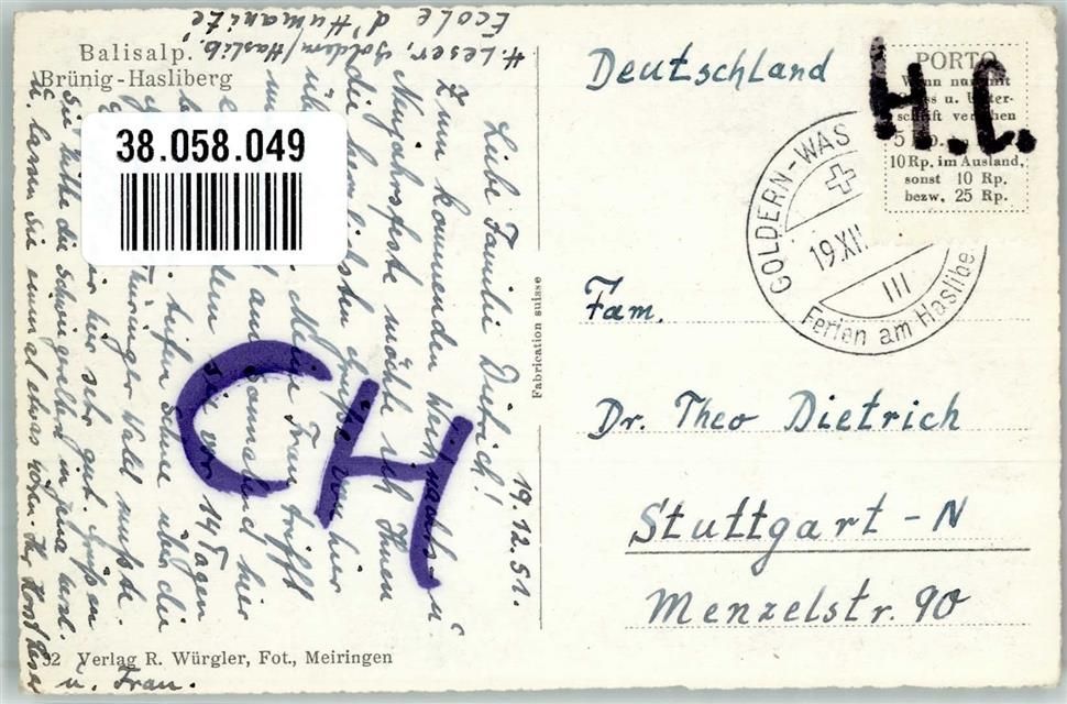 3860 Brünig 1951 Foto AK Winter Balisalp