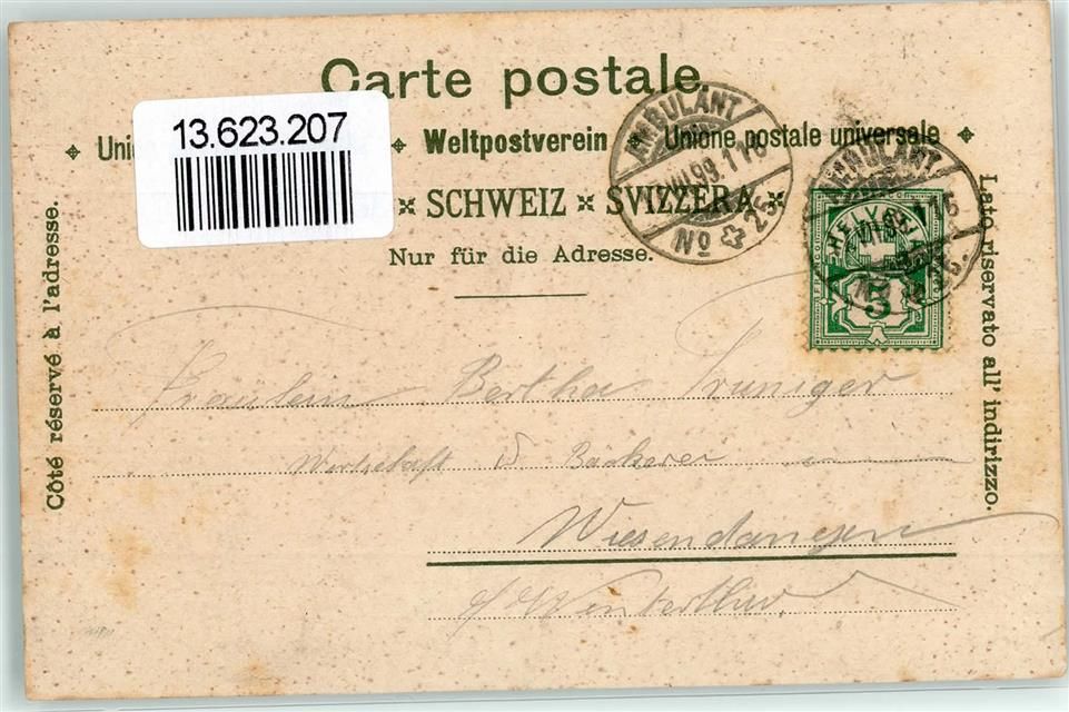 3860 Meiringen 1899 Lithographie Tracht Hotel Bären Bahnpost Zug 116 Nr. 25