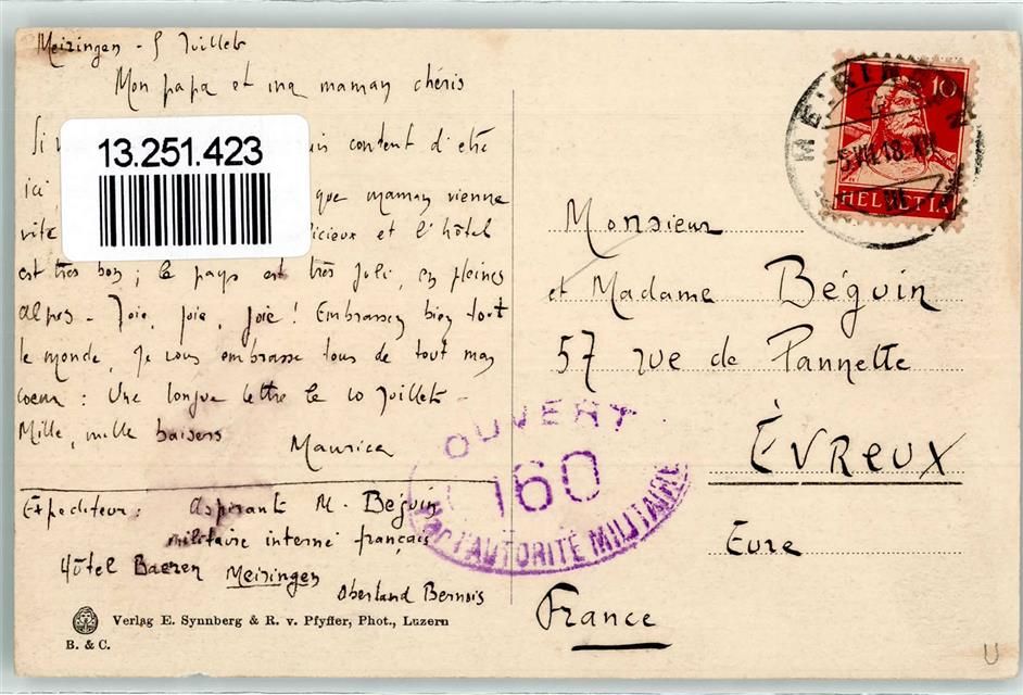 3860 Meiringen 1918 - Hotel Bären