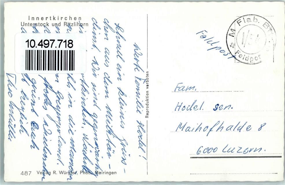Innertkirchen, Urnerstock Ritzlihorn Feldpost M Flab