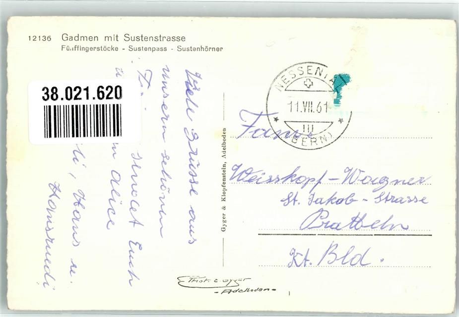 3863 Gadmen 1961 Foto AK Sustenstrasse