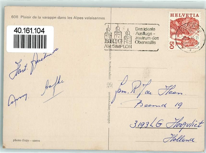 Brig, Plaisir de la varappe dans les Alpes valaisannes Bergsteiger Ort lt. Stempel