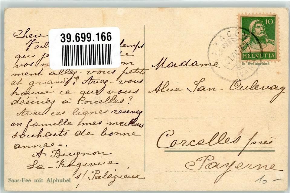 Saas-Fee, Alphubel sign. H. Frey Neujahr