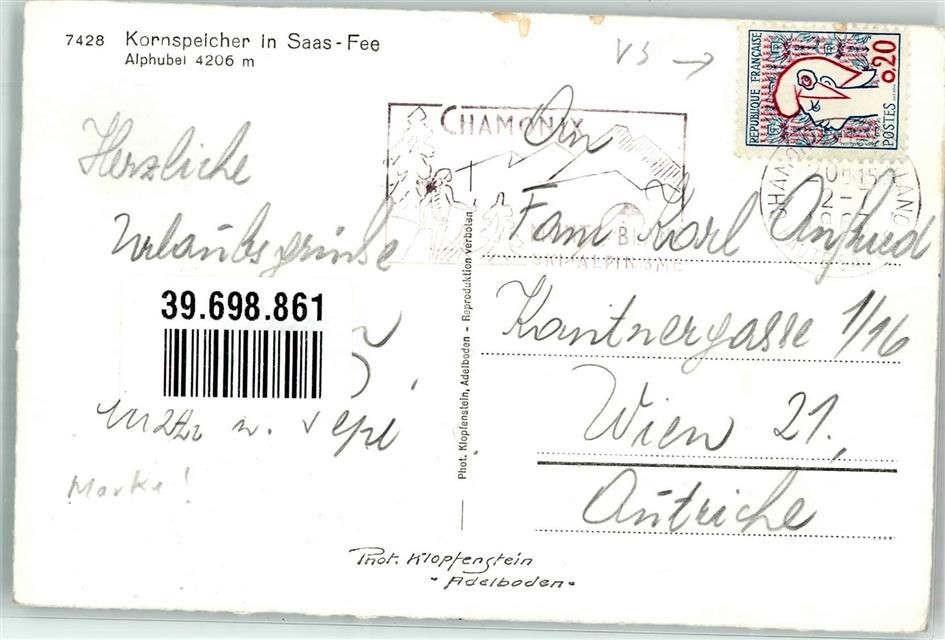 3906 Saas-Fee Foto AK Kornspeicher Alphubel