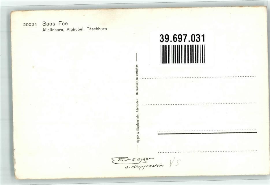 3906 Saas-Fee Foto AK Winter Allalinhorn Alphubel Foto Gyger