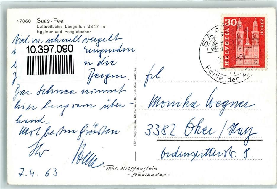 3906 Saas-Fee - Luftseilbahn Langefluh Egginer und Feegletscher