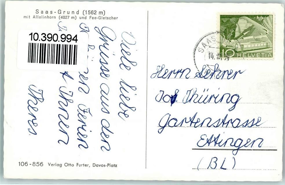 3910 Saas-Grund 1959 - Allalinhorn und Fee Gletscher