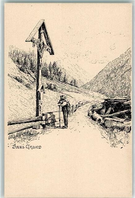 3910 Saas-Grund - Wandersmann beim Kreuz