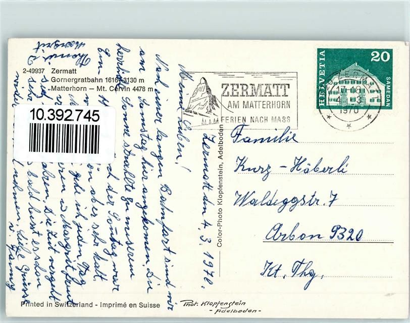 3920 Zermatt - Gornergratbahn Matterhorn Mt. Cervin