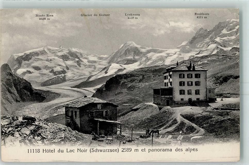 3920 Zermatt - Hotel du Lac Noir Schwarzsee et panorama des alpes Monte Rosa Glacier du Gorner Lyskamm Breithorn