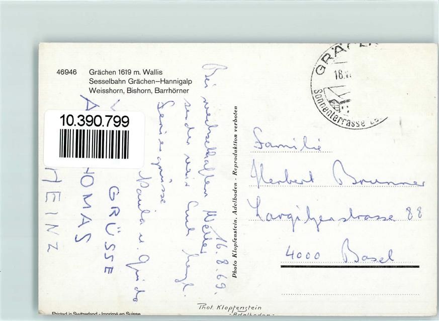3925 Grächen 1969 - Sesselbahn Grächen Hanigalp Weisshorn Bishorn Barrhörner