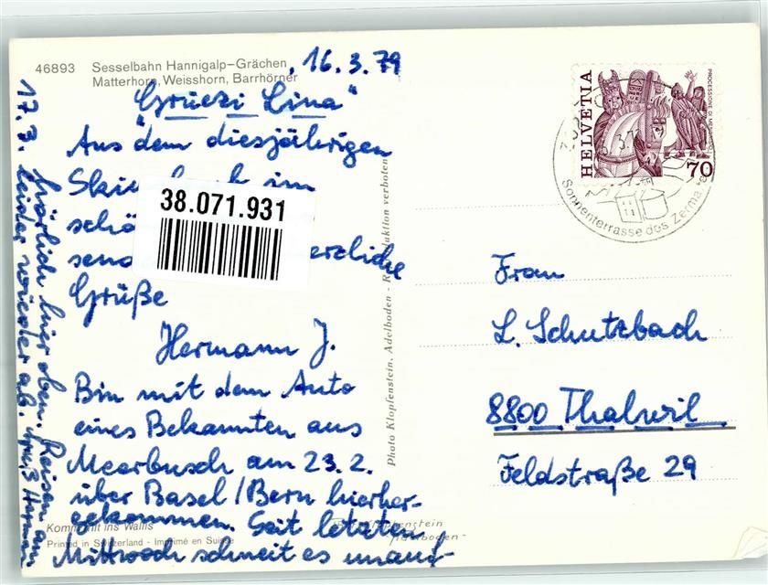 3925 Grächen 1979 Winter Seilbahn Hannigalp