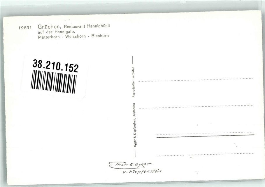 3925 Grächen Foto AK Gasthaus Hannoghüsli