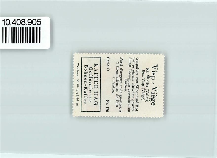 Visp, Vignette Wappen Kaffee Hag ca 1920-1940 Löwe