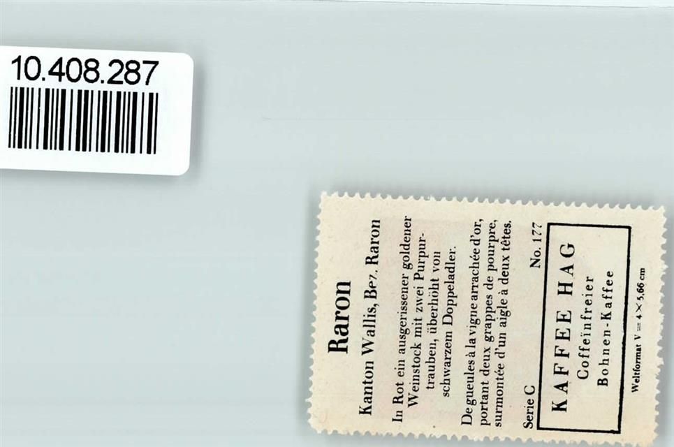 Raron, Vignette Wappen Kaffee Hag ca 1920-1940 Doppeladler Weinstock