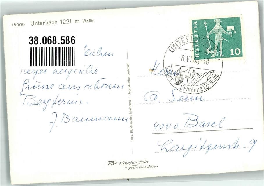3944 Unterbäch VS 1966 Foto AK