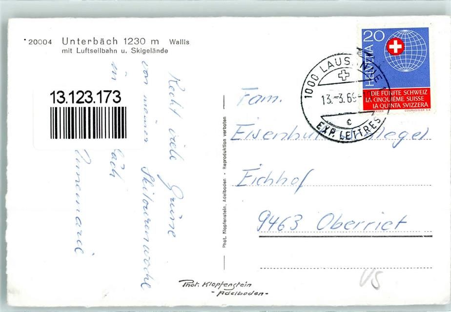 3944 Unterbäch VS - Luftseilbahn Skigelände Winter