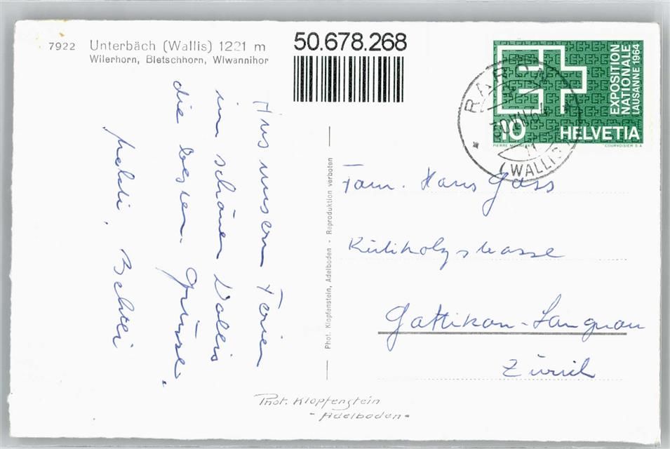 3944 Unterbäch VS - Wilerhorn, Bietschhorn